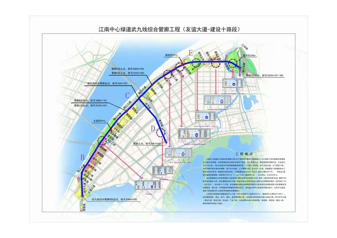 作為省市兩級重點工程,武九綜合管廊全長約16.2公里,是武漢市城市地下綜合管廊專項規(guī)劃確定的重要干線管廊,創(chuàng)下多個“國內(nèi)之最”。它是國內(nèi)城市核心即老城區(qū)單次建設(shè)規(guī)模最大(長度、斷面)的綜合管廊,是服務(wù)城市核心功能區(qū)(武昌濱江商務(wù)區(qū)、青山濱江商務(wù)區(qū)、華中金融城)數(shù)量最多的綜合管廊。