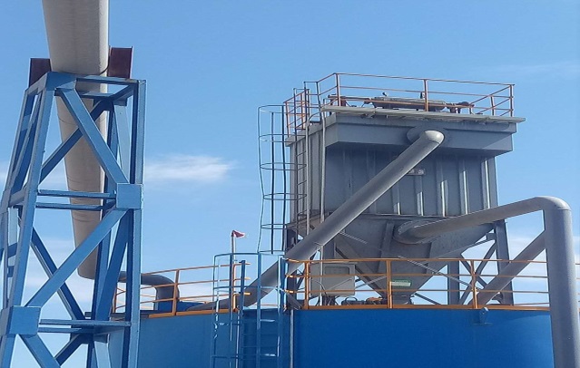 焚燒飛灰從廠外由專用密封車運輸至水泥廠內(nèi),通過泵送至飛灰儲倉內(nèi)。倉內(nèi)飛灰通過煙道輸送至窯尾分解爐高溫焚燒處置。為防止飛灰儲倉內(nèi)產(chǎn)生二次污染,在鋼板倉頂設(shè)置一套布袋除塵器,布袋除塵器收集的粉塵落入飛灰儲倉內(nèi),收塵飛灰再次入窯焚燒,沒有粉塵外排。廢氣監(jiān)測點位見圖4-5,飛灰倉入回轉(zhuǎn)窯廢氣治理設(shè)施現(xiàn)場照片如下圖4-6所示。